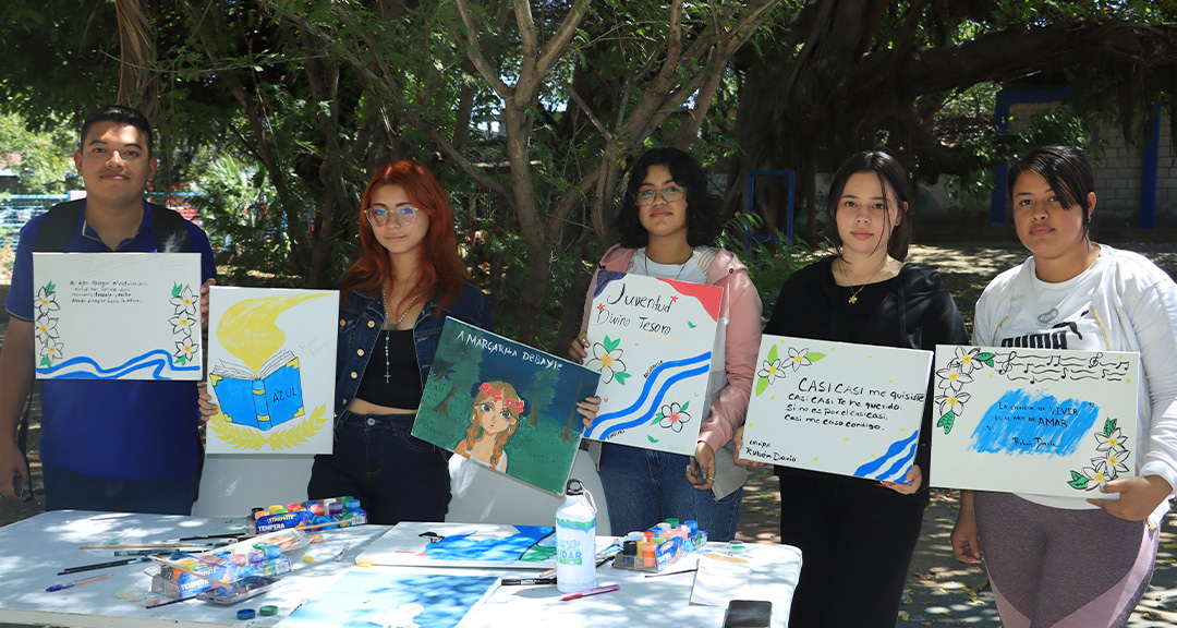 El recorrido artístico se integró a través de una exposición de pinturas en lienzo, donde cada obra representa momentos significativos de la vida, obra y pensamiento de Rubén Darío. Esta muestra pictórica facilita un aprendizaje visual y contextualizado, complementándose con recitales poéticos y expresiones musicales que emergen de la interpretación de cada cuadro, promoviendo así el protagonismo estudiantil y el trabajo colaborativo.»